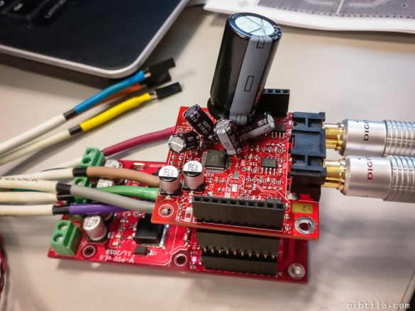 I am still not feeling confident enough on understanding all the twists of the DAC chip. Therefore, I have decided to do something I should have done in the beginning – make a test board. So next I will make a lot larger ugly board where I have space to put better regulators and extra capacitors on all supplies if necessary. Testing on this gives me a good understanding what are the sensitive bits that require extra attention (and valuable board space).